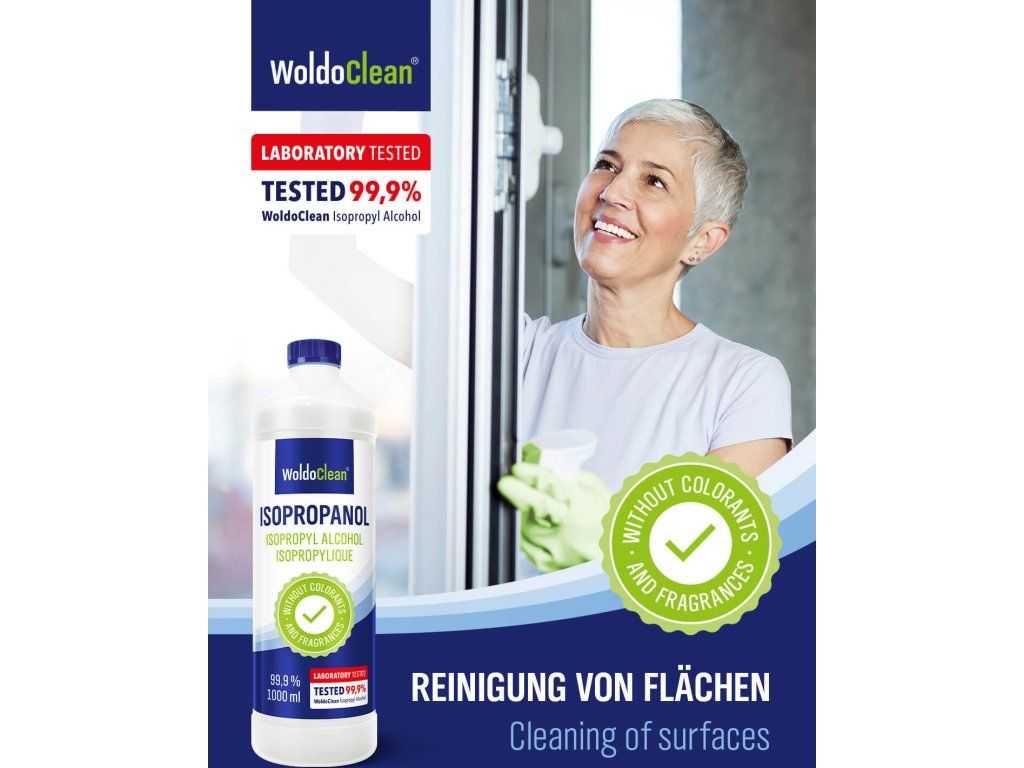 - WoldoClean isopropanol je ideální pro řadu aplikací v domácnosti, lékařství, průmyslu nebo dílnách.