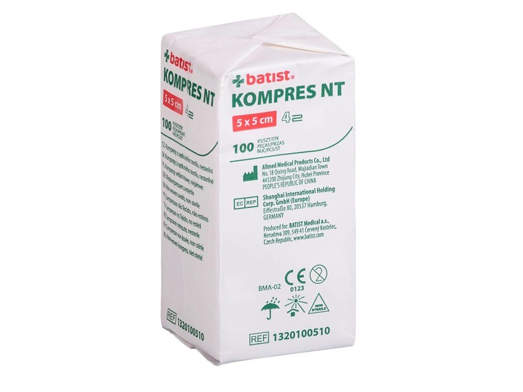 Charakteristika: Kompresy jsou vyrobeny z netkaného textilu o složení 70% viskózy a 30% polyesteru o plošné hmotnosti 30 g/m2. Tkanina je skládána do formy kompresů o čtyřech vrstvách. Balení nesterilního výrobku je po 100 kusech kompresů v papírovém sáčku. Sterilní výrobky jsou dodávány ve sterilním balení a baleny po 2, 5 nebo 10 ks. Použití: Kompresy z netkaného textilu jsou vhodné k prvotnímu ošetření znečištěných a exudujících poranění, jako mechanická bariéra v kombinaci se sterilním krytím ran k všestrannému použití na klinikách i v ambulancích.Doplňkové parametry