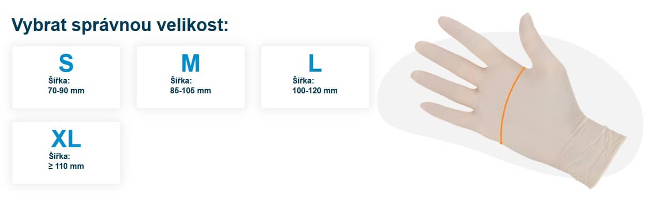 - Bez pudrového prostředku pro usnadnění navlékání a sundávání rukavic i na vlhkých rukách
