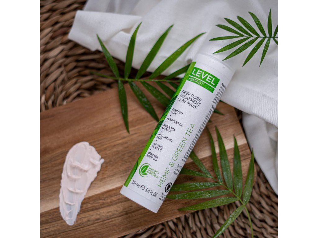 Pleťová řada LEVEL je určena pro citlivou pleť se sklonem k pupínkům. Tajemství Jílové masky na pupínky spočívá v kombinaci kyseliny salicylové, extraktu ze zeleného čaje a oleje z konopných semínek (CBD olej) a kaolinového jílu.
