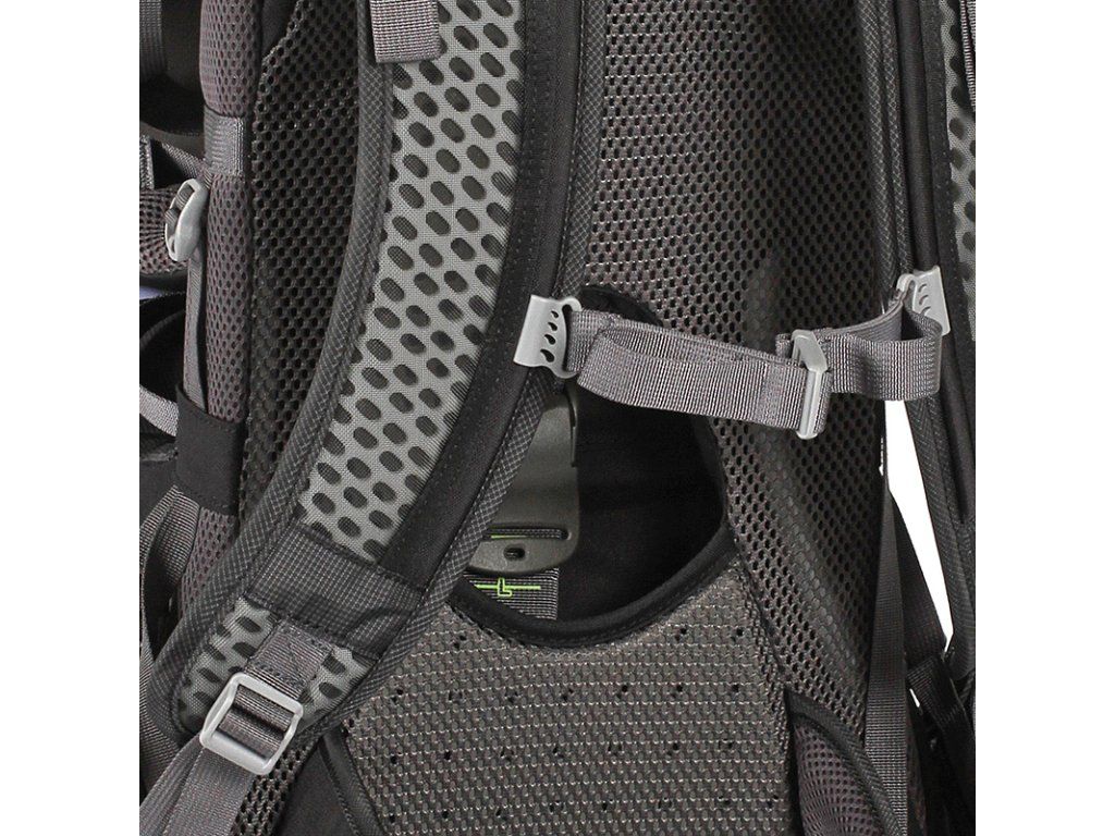 - Vysoce kvalitní nastavitelný zádový systém s polstrováním ramen, zadní části a otočným bederním pásem