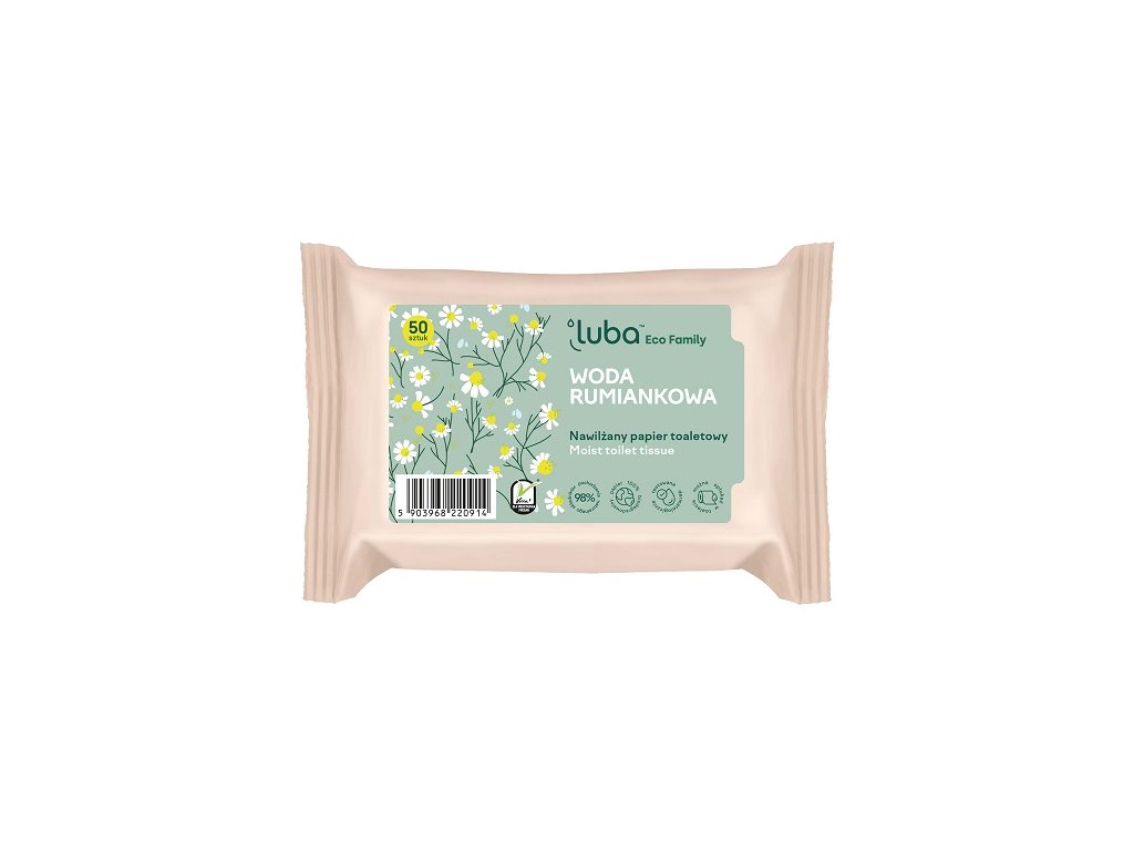 Vlhčený toaletní papír Luba Eco Family pro celou rodinu je dokonalým způsobem, jak udržet vše čisté a svěží po každém použití toalety. Jedinečné složení s heřmánkem poskytuje pocit pohodlného čištění a péče. Fyziologické pH, dermatologicky testováno. Papírový materiál 100% přírodního původu, splachovatelný do WC. Používejte podle určení.