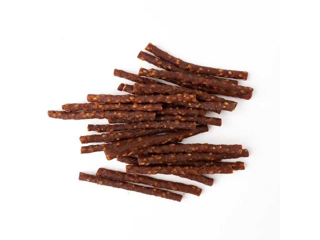 Přírodní masová pochoutka z kachního masa formované do měkkých proužků, které se snadno dělí na menší kousky.