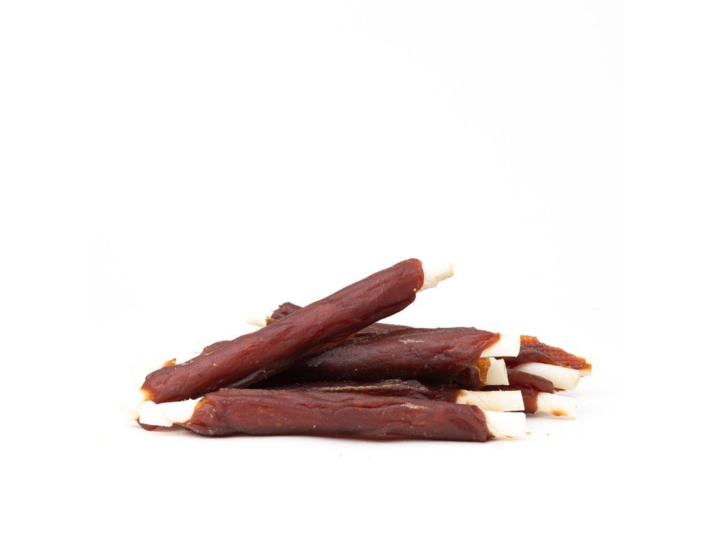 - Tyčka z hovězí kůže obtočená plátkem lahodného kachního masa.