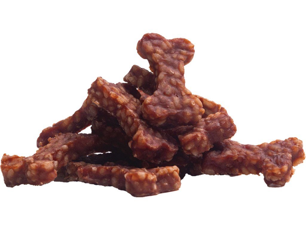 Měkká, přírodní masová pochoutka z kachního masa formovaná do měkkých kousků.