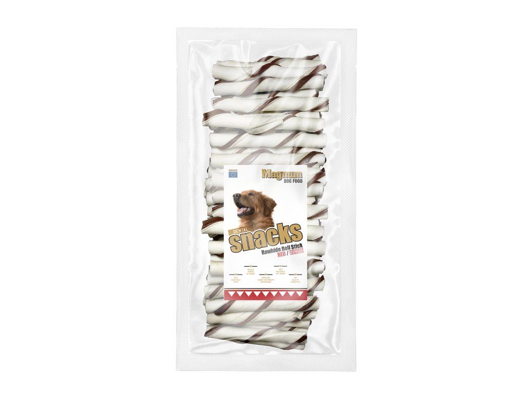 Magnum Rawhide roll stick 5" 12,5cm (cca 40ks) RED/WHITE