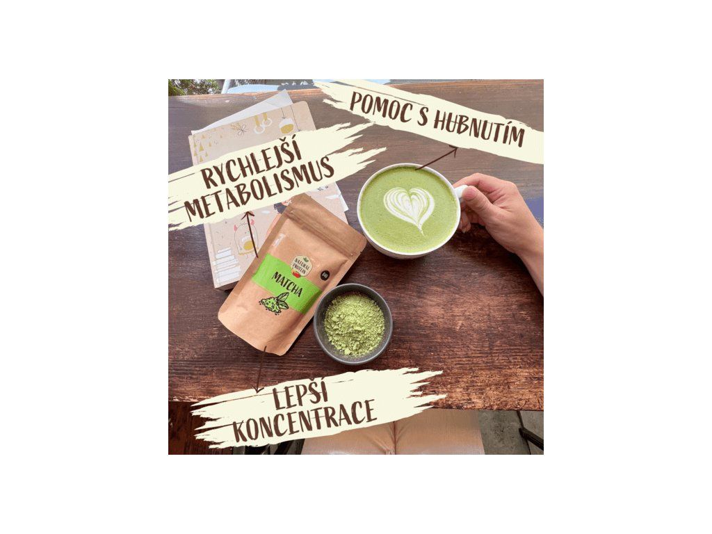 Matcha čaj bio je 100% zelený čaj nejvyšší kvality, který vám pomůže doplnit energii, zrychlí metabolismus a podpoří hubnutí. Čaj Matcha je doslova zázrakem ve výživě, protože obsahuje plno vitamínů, antioxidantů a zdraví prospěšných látek, zejména katechinů. Jeho unikátní složení pročišťuje krev a odplavuje z těla toxiny.