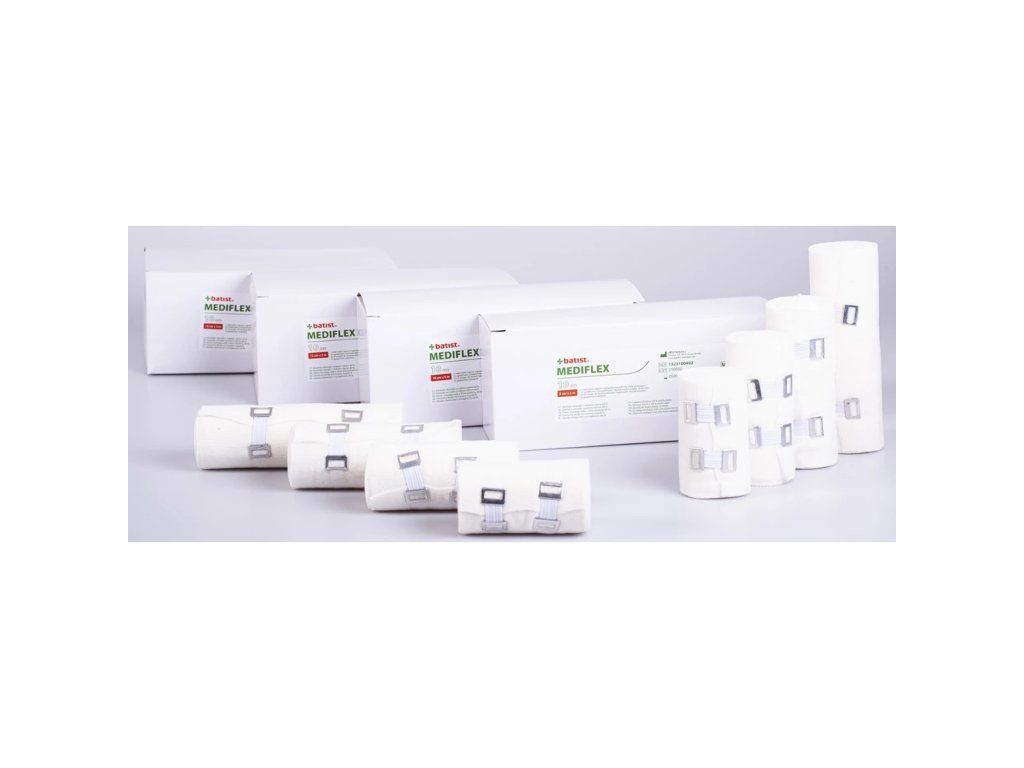 Charakteristika: Mediflex je elastické obinadlo s krátkým tahem cca 60%. Mediflex vytváří díky krátkému tahu vysoký pracovní tlak a nízký tlak klidový. Vhodný je proto při léčbě žilního a lymfatického systému, dobře se přizpůsobuje tvaru končetiny a nesklouzává. Mediflex je vyráběn v rozměrové řadě od 6 do 15 cm šíře, balení je nesterilní po 10 ks v krabičce.Hodnocení produktu