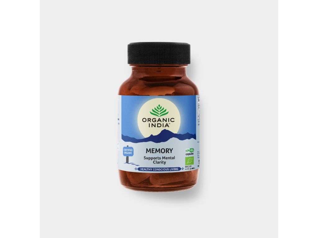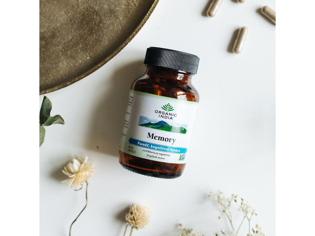 Memory od Organic India obsahuje kombinaci dvou ájurvédských bylin Brahmi (Bacopa monnieri) a Gotu Kola (Centella asiatica).