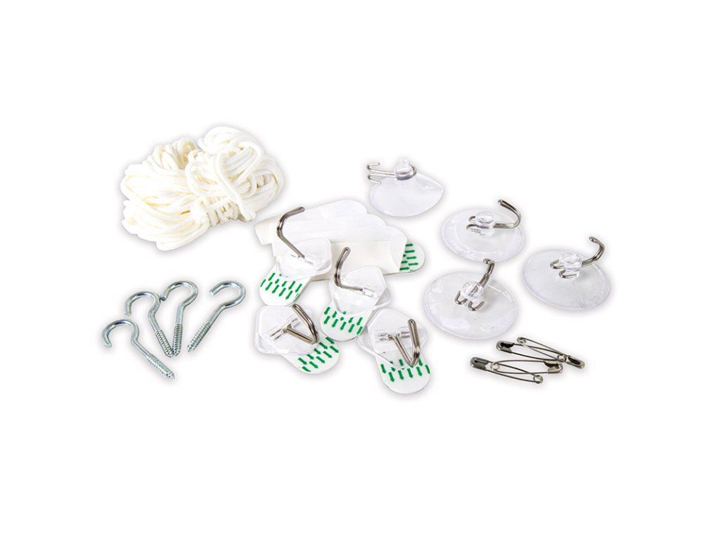 Sada příslušenství k pověšení moskytiéry v jakékoliv situaci. Všechny Lifesystems moskytiéry jsou sice dodávány s háčky, případně šňůrami určenými k zavěšení moskytiéry, ale je velmi snadné je ztratit nebo někde zapomenout.