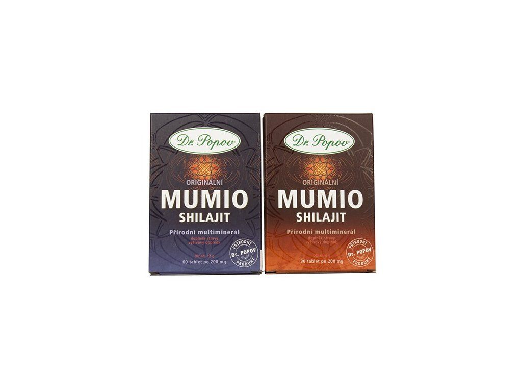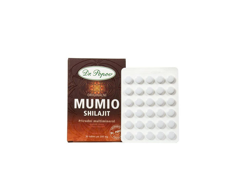 Originální Mumio Dr. Popova je přírodní multiminerál, který obsahuje 10 zásadních minerálů (např. vápník, draslík, hořčík), 26 stopových prvků (rubidium, cesium aj.) a další důležité aminokyseliny. Všechny účinné látky jsou ve velmi dobře vstřebatelné formě.