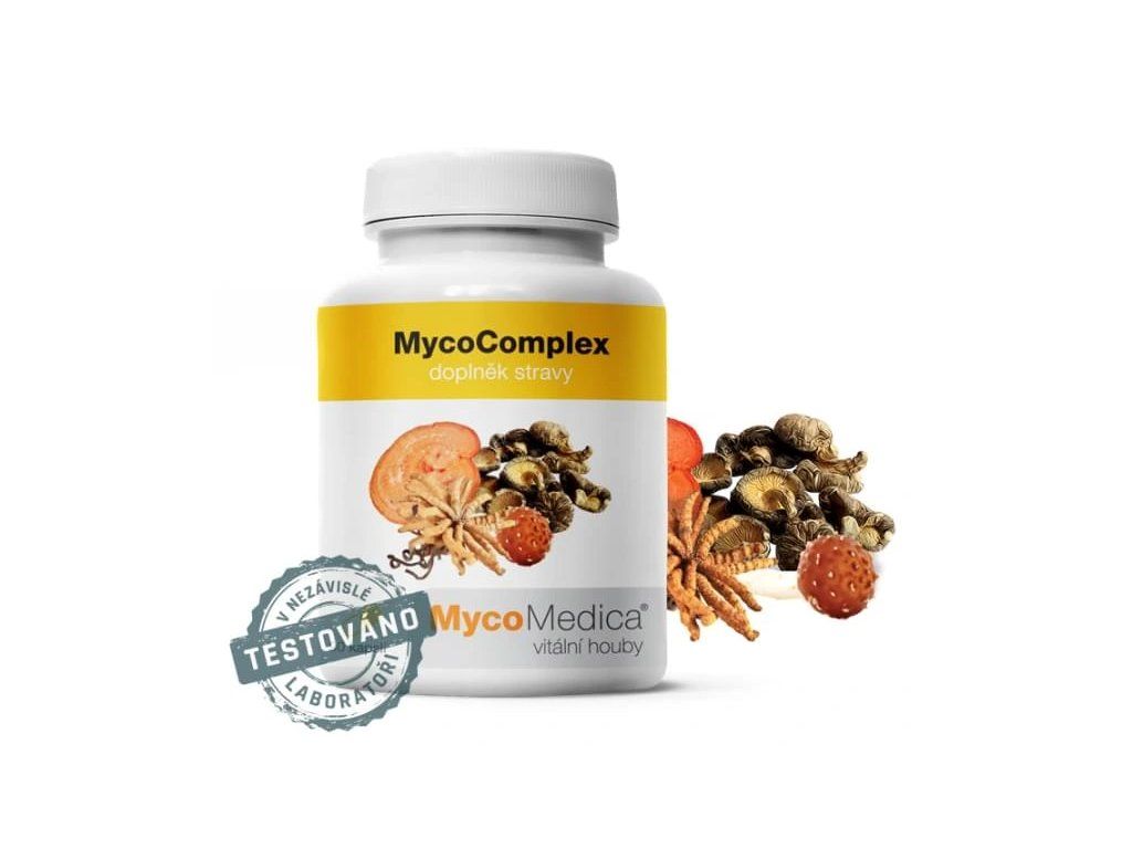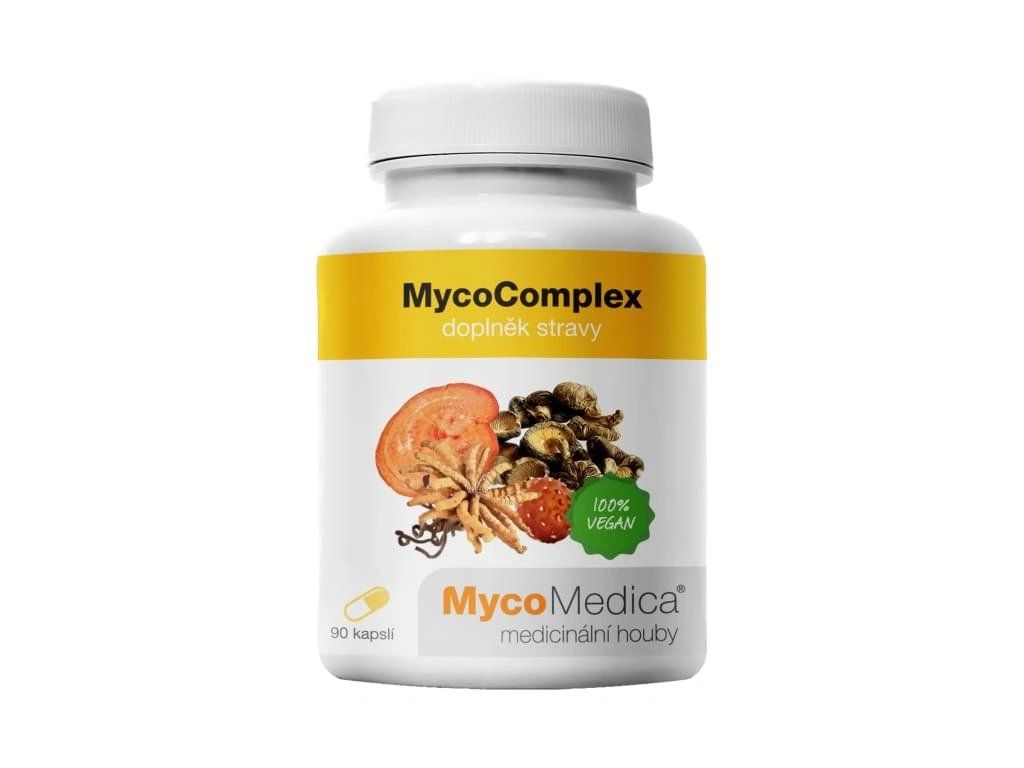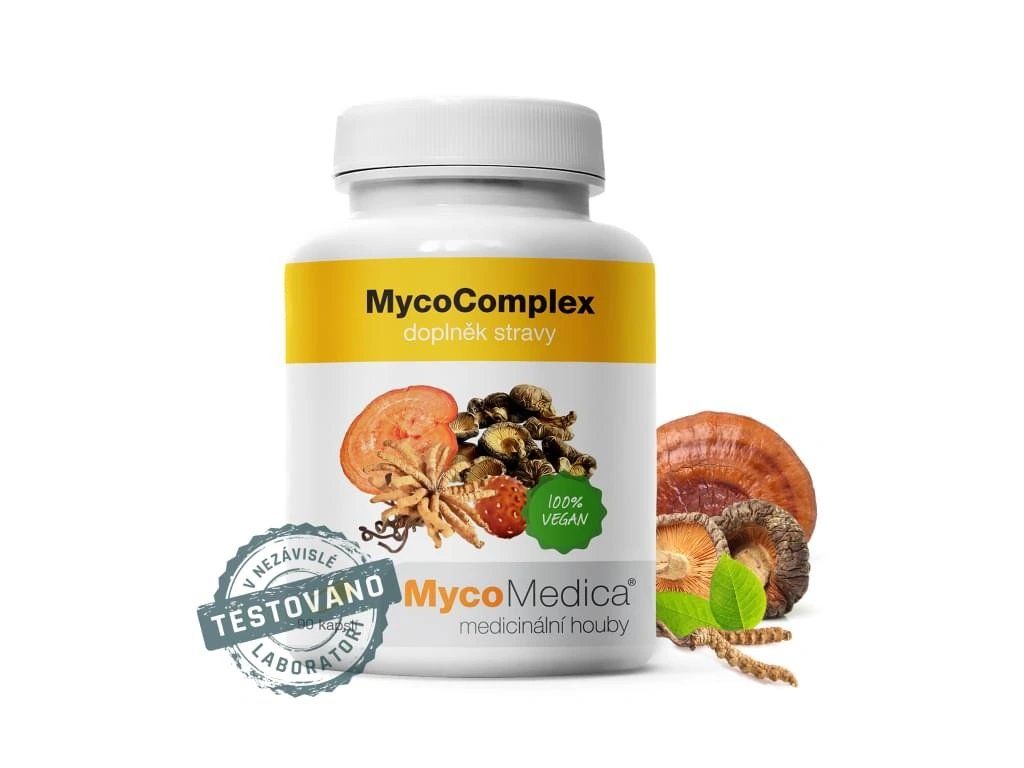 MycoComplex je vyvážená kombinace vitálních hub Cordyceps (housenice čínská, Cordycpes sinensis), Reishi (lesklokorka lesklá, Ganoderma lucidum), Agaricus (brazilský/mandlový žampion, Agaricus blazei Murill) a Shiitake (hoževnatec jedlý, Lentinula edodes). Je doplněná Acerolou (brazilská třešeň), která obsahuje vysokou koncentraci vitamínu C. Použité čtyři houby působí ve směsi synergicky, jejich účinek se tak násobí.