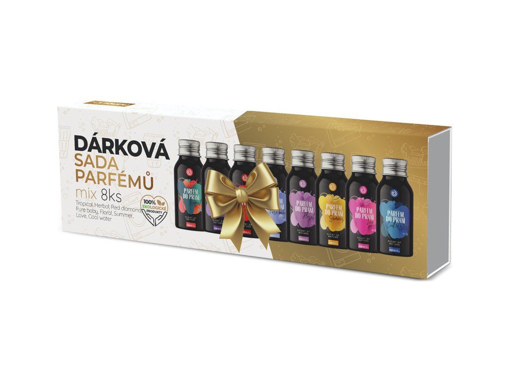 Sada obsahuje osm skleniček testerů s různými vůněmi, takže si můžete vyzkoušet různé kombinace a najít tu pravou pro vás. Můžete si také představit, jak byste se cítili, kdybyste měli možnost každý den nosit prádlo s jinou vůní.