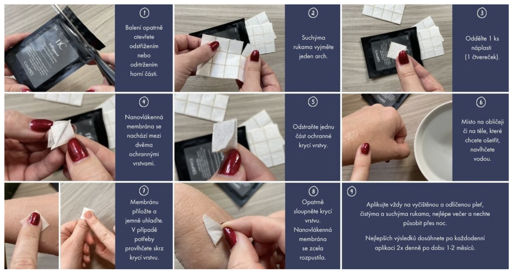 - Navlhčete pokožku a aplikujte náplast na pigmentovou skvrnu.
