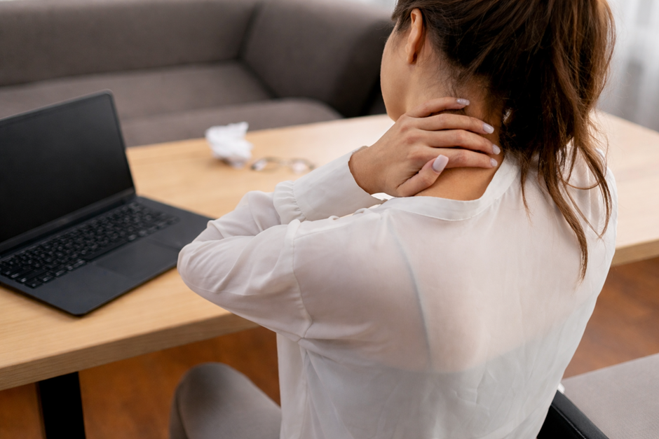 - dlouhodobé svalové napětí, zejména v oblasti ramen a krku,
