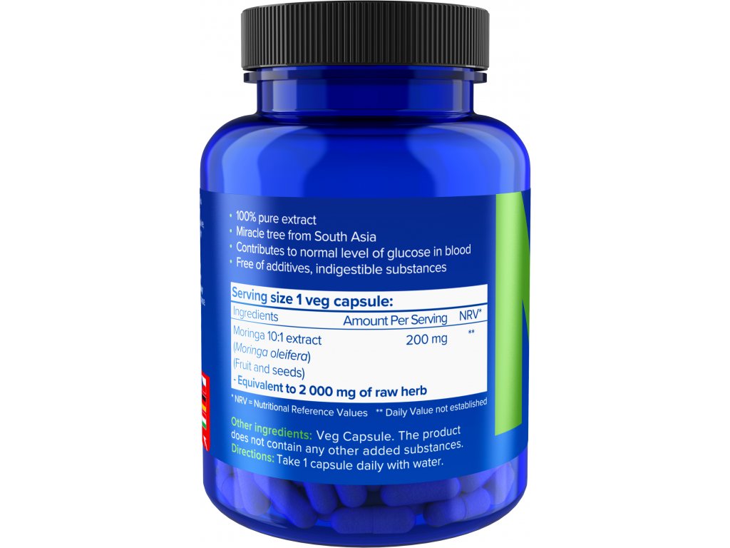 Moringa od značky Natios poskytuje extra silnou dávku bez dalších plnidel a éček, jde tak o produkt s vysokou čistotou a zároveň velkou účinností. Obsahuje pouze 100% čistý extrakt Moringy (plodů a semen). Díky silnému extraktu už nemusíte užívat několik kapslí denně a myslet na to, jestli už jste si užili pravidelnou denní dávku. V jedné kapsli máte veškerou sílu, kterou Moringa nabízí.