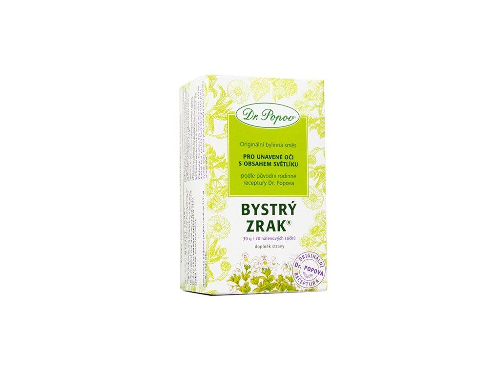 Oční čaj Bystrý zrak Dr. Popova obsahuje vyváženou kombinaci tradičně užívaných bylin, mimo jiné světlík lékařský, který přispívá ke zdravému stavu zraku.