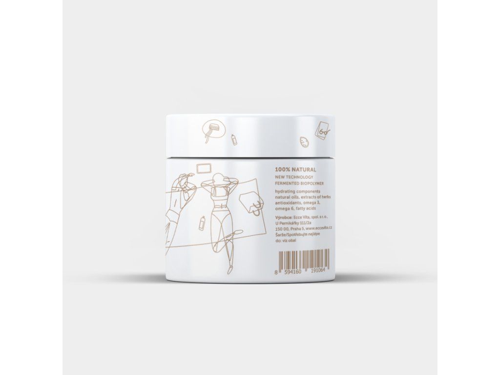 Obsahuje přírodní biopolymery, složky přírodních olejů, antioxidanty, kyselinu ferulovou, extrat z šištic chmele otáčivého, vitamin E. Přírodní biopolymery obsahují pouze tělu vlastní látky.