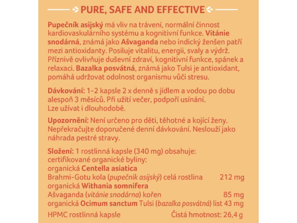 Kapsle je z rostlinné celulózy. Obsahuje pouze sušené byliny.