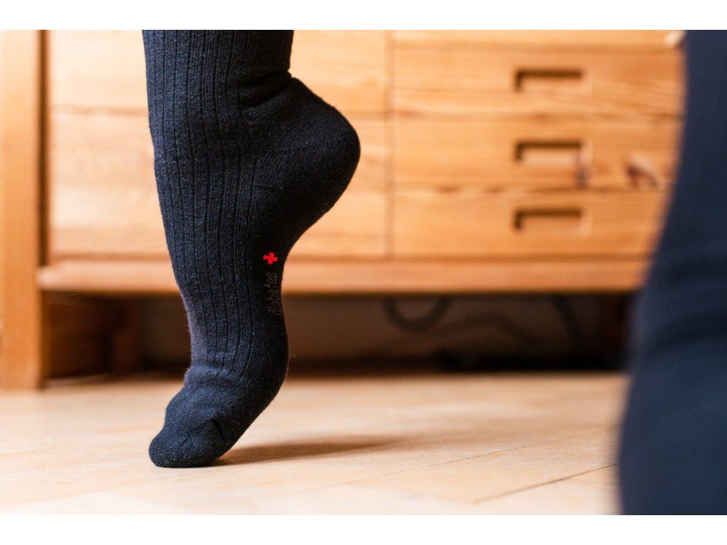 Ponožky pro zdraví nového typu mají vysokou roztažnost, až 26 cm a velmi jemný svár speciálně upraveného lemu. Horní lem tedy nezabraňuje průtoku krve a je velmi jemný. Ponožka perfektně sedí na noze, netáhne a přitom nesklouzává. Špice je uzavřena novým plochým řetízkovým švem na straně chodidla, který je umístěn v jamce pod prsty a jen minimálně přijde do kontaktu s pokožkou. Pata a špice je vyplněna měkkou mikroplyšovou výstelkou, která výrazně snižuje riziko vzniku otlaků a zajišťuje měkký došlap při chůzi. Výstelka špice je prodloužena přes celé prsty, hřeje a tím poskytuje komfort osobám trpícím pocitem studených nohou a především diabetikům.