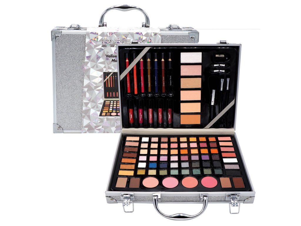 ParisAx kompletní sada make-upu ve formě cestovního kufříku. V kufříku naleznete oční stíny, pudy, rozjasňovače, tekuté rtěnky, tužky na oči, tužky na rty, štětce, ořezávátko a v neposlední řade, kvalitní cestovní kufřík.