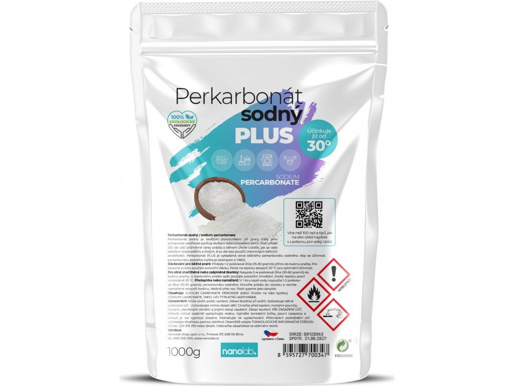 Na rozdíl od mnoha chemických čistících prostředků je perkarbonát sodný biologicky odbouratelný a neškodný pro životní prostředí. Pracuje na bázi kyslíku, takže po použití se rozkládá na vodu, kyslík a sodu. Je to jako kdyby vaše prádlo čistil samotný Kapitán Planeta! - Univerzální
