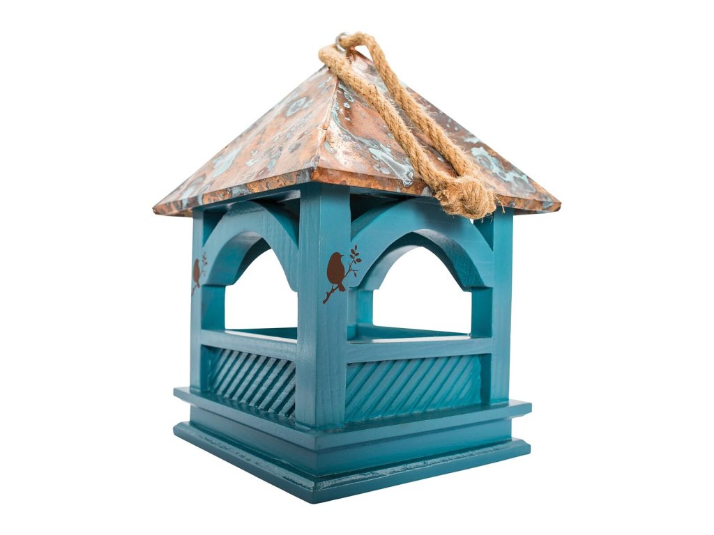 Toto krmítko pro venkovní ptactvo v elegantním designu altánku je ideální místo, kde mohou ptáci najít bezpečně útočiště a potravu během celého roku.