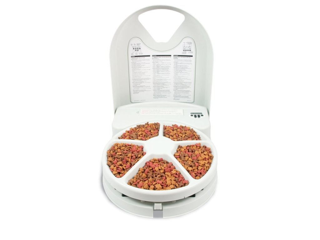 Krmítko na baterie pro domácí mazlíčky s LCD displejem. Tác, který lze mýt v myčce, nabízí 5 misek (každá pojme až 236 ml suchého krmiva). Krmítko lze použít na automatické dávkování krmiva, pamlsků či léků v průběhu 48 hod. Vhodné na krmení v domácnosti. Skvělý pomocník pro kontrolu porcí (např. pro mazlíčky s nadváhou).