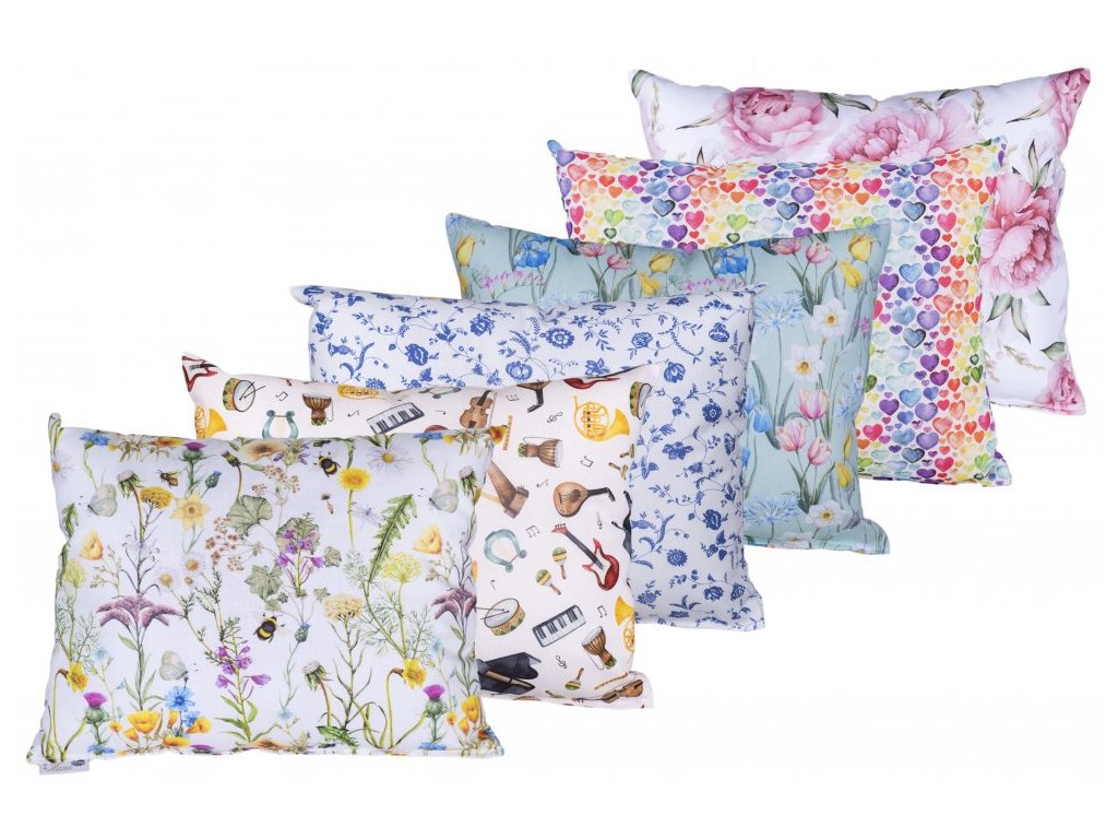 - Variabilní design: Polštářky jsou dostupné v různých barevných provedeních a vzorech, které se průběžně obměňují, což zajišťuje jedinečnost každého kusu.