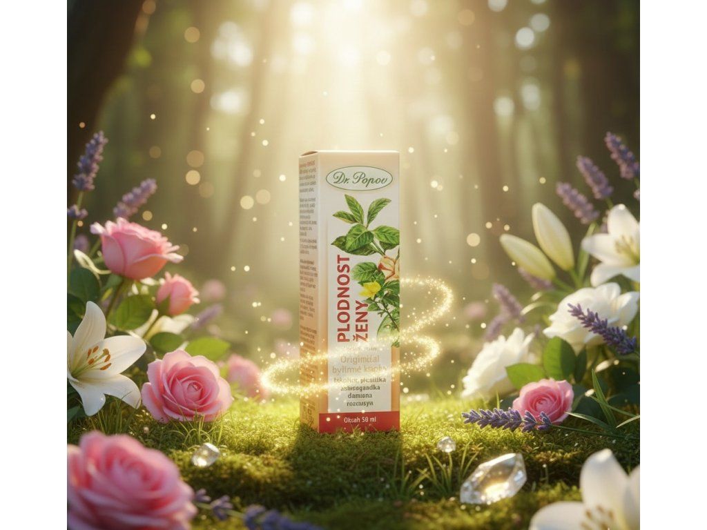 Originální bylinné kapky Dr. Popova Plodnost ženy obsahují 6 známých bylin, vhodných pro podporu reprodukčního systému a sexuální zdraví.