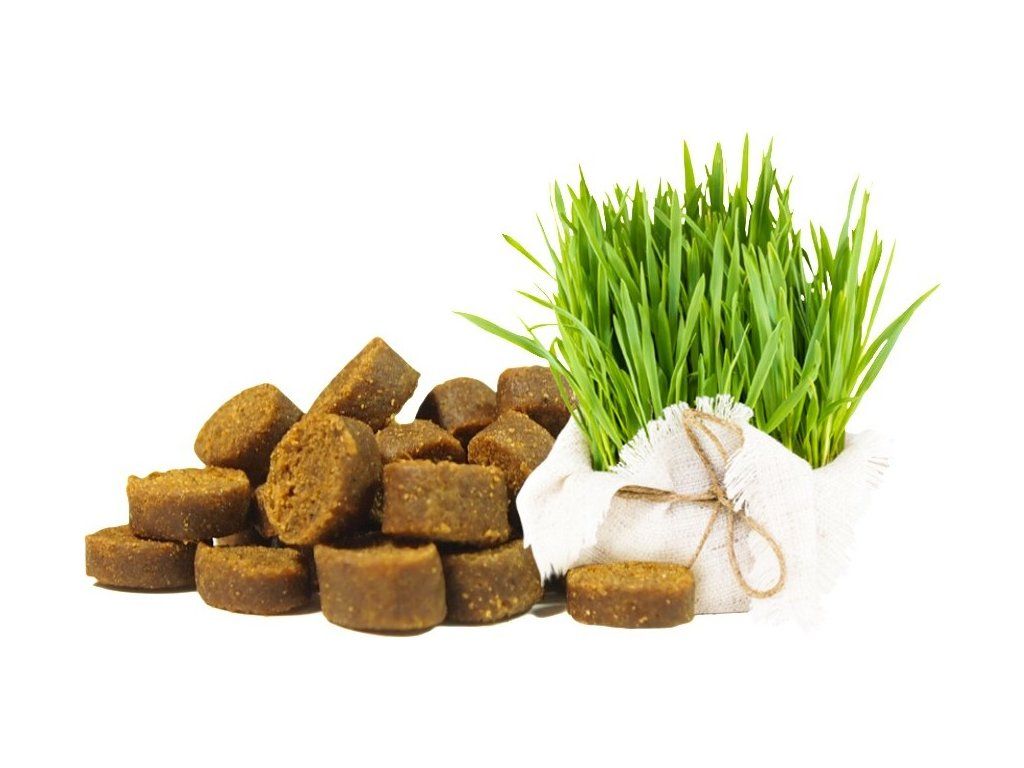 - Z krocaního masa - obohaceno o ovesnou trávu.