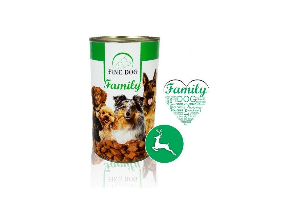 maso a výrobky živočišného původu (4 % zvěřina), obiloviny, vedlejší výrobky rostlinného původu, minerální látky, různé cukry.