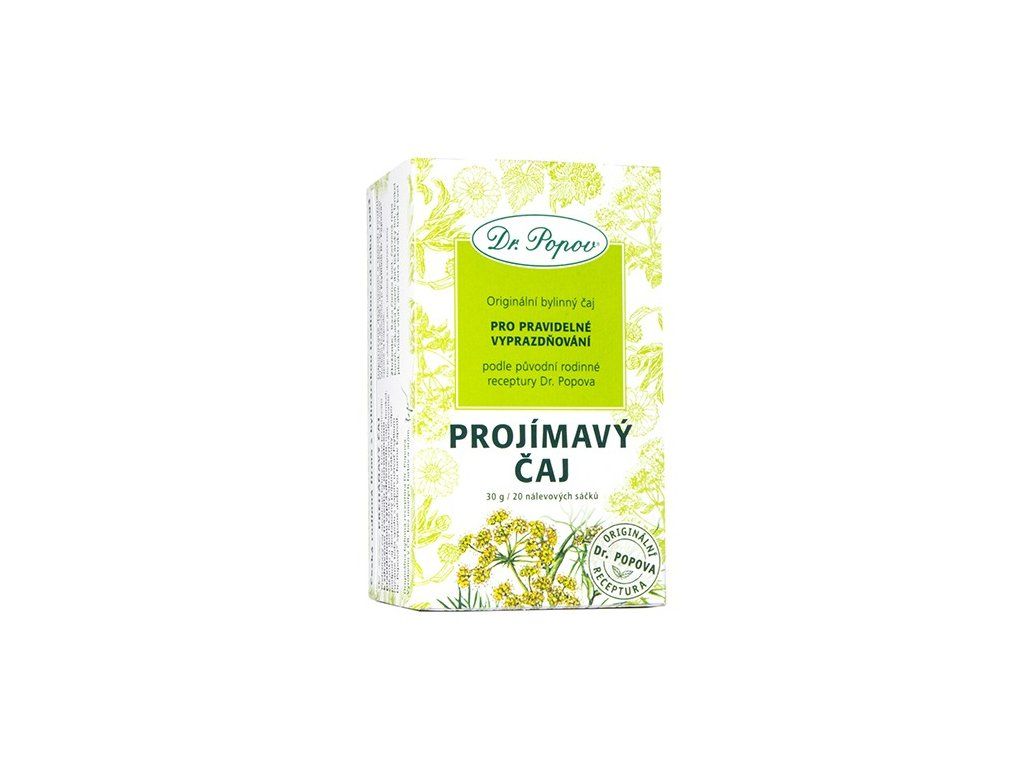 Projímavý čaj Dr. Popova je směs z tradičně užívaných bylin, které přispívají ke zdravému trávení a správnému, pravidelnému vyprazdňování: fenykl, čekanku a proskurník. Správné trávení je základ zdraví. Pokud nefunguje, jak má, necítíme se většinou dobře.