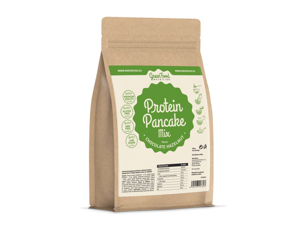 GreenFood Nutrition Proteinové palačinky jsou hotová instantní směs s nízkým obsahem cukru a vysokým obsahem proteinu (40 %) určená pro přípravu chutných lívanců nebo palačinek, které jsou vyrobeny z prvotřídních evropských surovin. I bez stabilizátorů, konzervantů a chemických aromat, se nám podařilo dosáhnou vynikající chuti a zachovat maximální nutriční hodnotu. Proteinové palačinky jsou založeny na německém značkovém Whey proteinu Lactomin®, vaječné směsi a bílku z podestýlkového chovu od německého výrobce Ovobest a komplexních sacharidech, které mají nízký glykemický index a energie se z nich uvolňuje pomaleji.