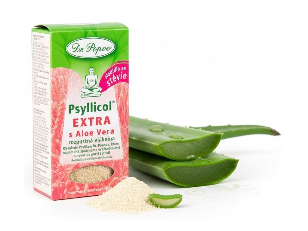 Psyllicol EXTRA s Aloe Vera je určený pro intenzivní očistu těla. Jedná se o kombinaci vlákniny Psyllium Dr. Popova a extraktu z Aloe Vera, který je známý pro své vynikající detoxikační účinky.
