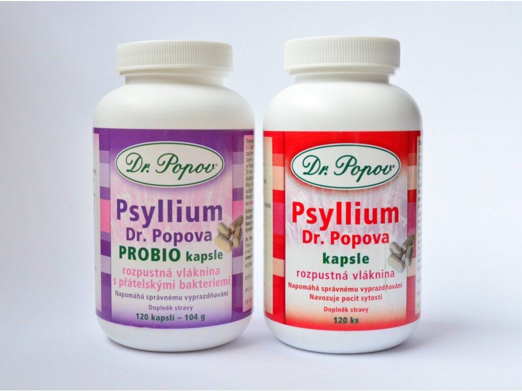 Maximální denní dávka je 9 kapslí. Jedna kapsle obsahuje 650 mg Psyllia Dr. Popova.