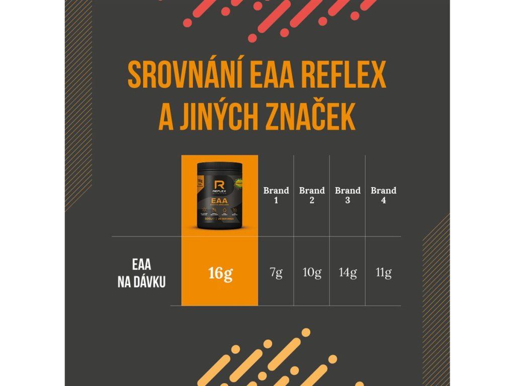 - 16 g EAA na jednu 25 g dávku,