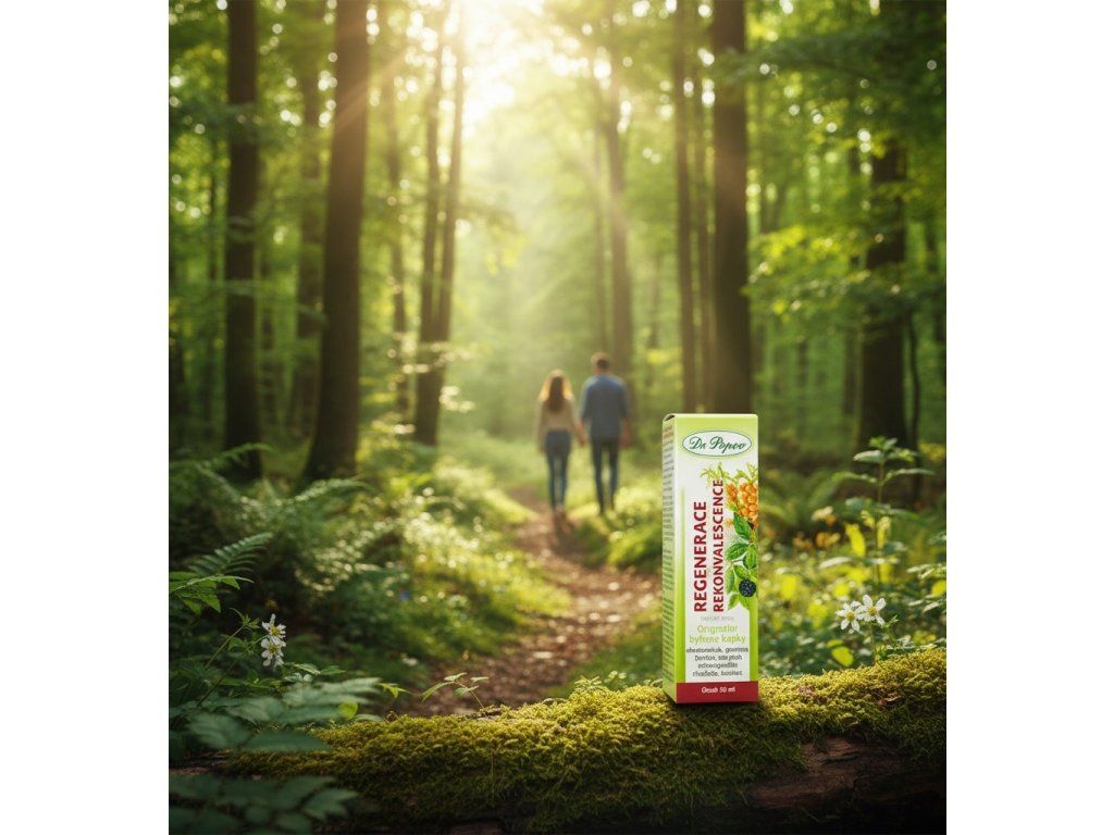 Originální bylinné kapky Dr. Popova Regenerace rekonvalescence obsahují 7 prověřených bylin pro zotavení a znovunabytí sil.