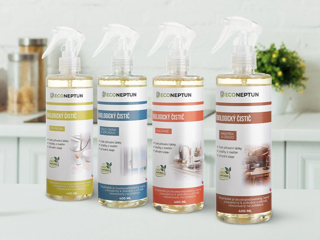 Veškeré produkty značky EcoNeptun jsou navrženy tak, aby splňovaly požadavky i té nejnáročnější hospodyňky. Úklidové prostředky vás zbaví nečistot i bakterií a zanechají vaši domácnost čistou a krásně provoněnou. Přípravky pro osobní hygienu zase zahrnou vaše tělo vítanou péčí. Díky širokému sortimentu přípravků si určitě vyberete i vy.