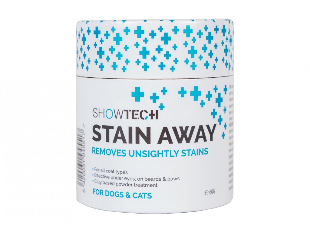 • Účinné odstraňovače skvrn – například Show Tech+ Stain Away, který pomáhá eliminovat slzné skvrny šetrným způsobem