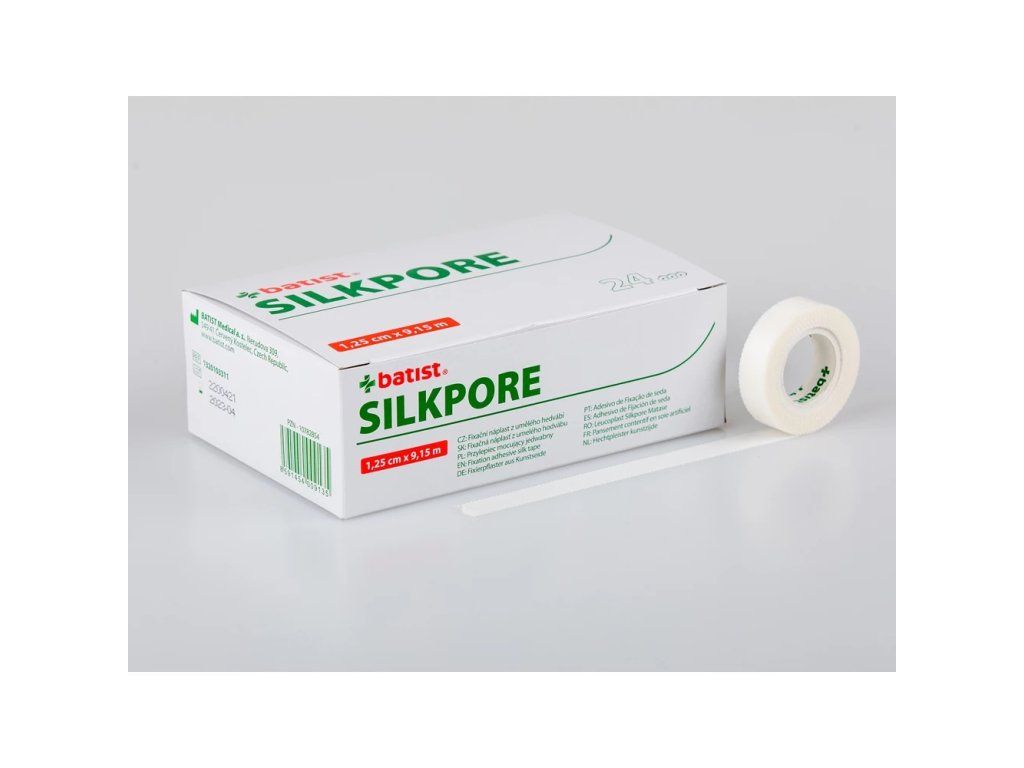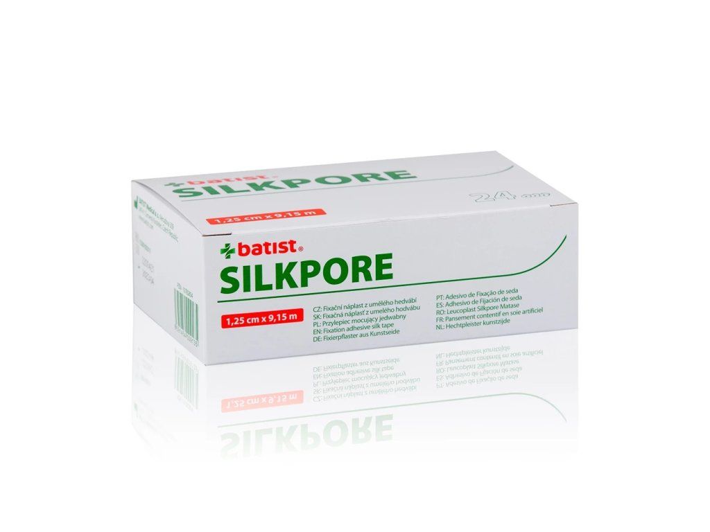 Charakteristika: Pevná nedráždivá fixační náplast z umělého hedvábí v bílé barvě se silnou adhezí. Silkpore je vhodná pro pacienty s citlivou pletí, propouští vzduch a vodní páru, takže pokožka dýchá. Výborně se hodí k upevnění sond, kanyl a katetrů i k fixaci obvazů všeho druhu. Při odstranění nezanechává nežádoucí zbytky adhesiva.Doplňkové parametry