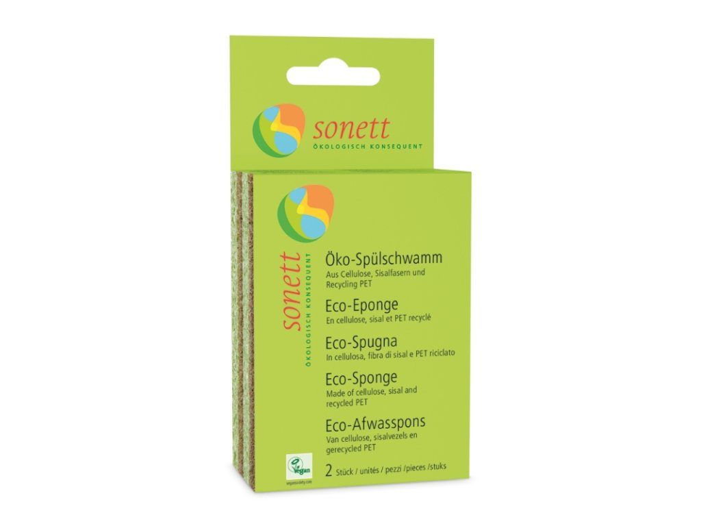 Ekologická houbička na mytí nádobí i úklid. Šetrná k povrchům, které nepoškrábe. Vyrobená z celulózy, sisalových vláken a recyklovaných PET lahví. Nezanechává škrábance a je omyvatelná do 60 °C. Vhodná i na mytí jemného skla, nádobí z ušlechtilé oceli, nerezu a pro povrchy s lotosovým efektem.