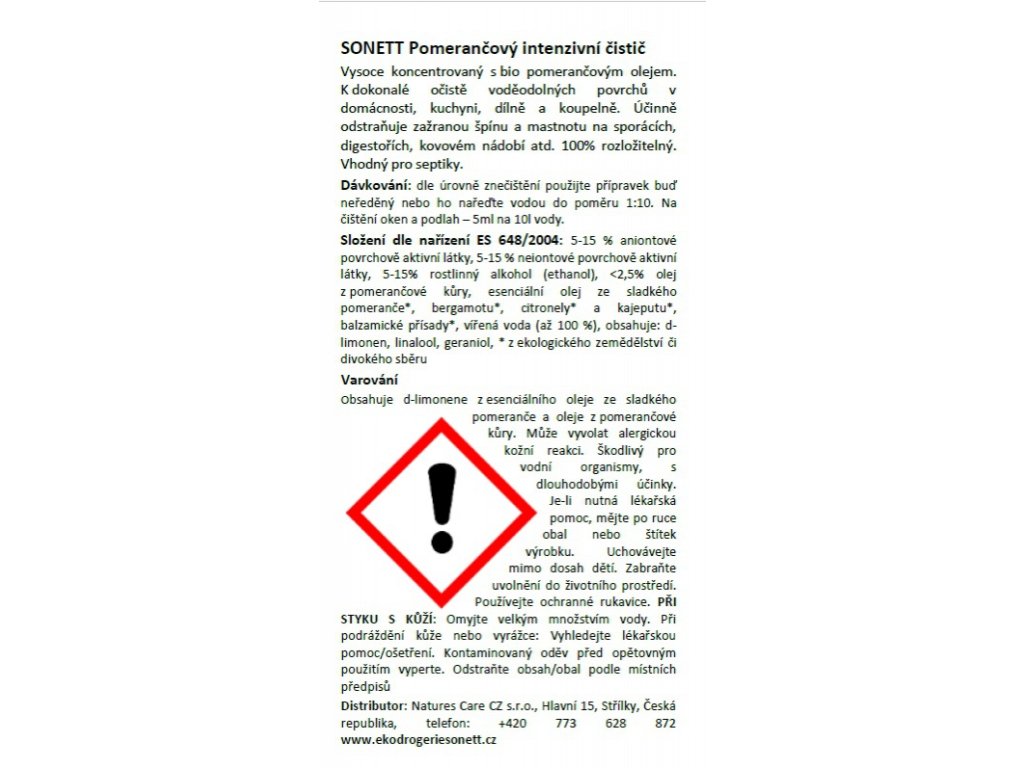 Obsahuje přírodní limonene: může vyvolat podráždění při kontaktu s pokožkou. Škodlivý pro vodní organismy.