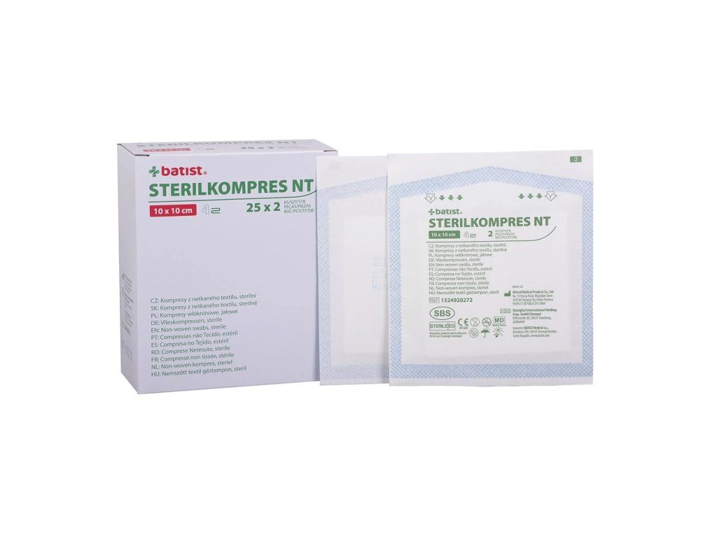 Charakteristika: Kompres je vyroben z netkané textilie, ve složení 70% viskózy a 30% polyesteru o plošné hmotnosti 30 g/m2. Tkanina je skládána do formy kompresů. Vyznačuje se mnohem lepší vzlinavostí tekutin než klasická gáza. Umožňuje jednodušší manipulaci při stříhání krytí. Nedochází k lepivosti okrajů nebo uvolňování nitek do ran. Předností je velmi dobrá savost, prodyšnost, měkkost a hebkost. Pro hospodárné použití jsou čtyřvrstvé kompresy k dispozici v různých rozměrech. Použití: K všestrannému ošetření ran, zejména při prvním ošetření znečištěných, infikovaných a silně secernujících ran; ve formě tamponu při malých operačních zákrocích v ambulancích a nemocnicích.Doplňkové parametry