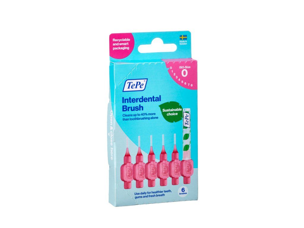 TePe Original růžové mezizubní kartáčky z bioplastu 0,4 mm, 6 ks