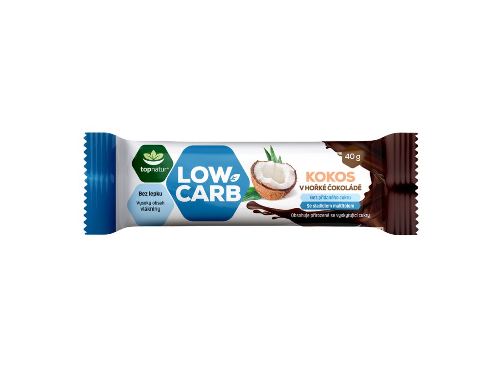 Topnatur LOW CARB tyčinka kokos v hořké čokoládě, 40 g