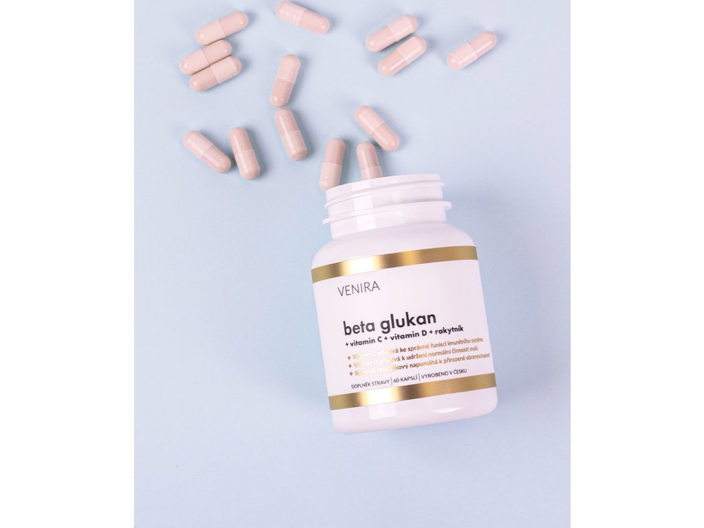 VENIRA beta glukan s vitamínem C, vitamínem D a rakytníkem, 60 kapslí