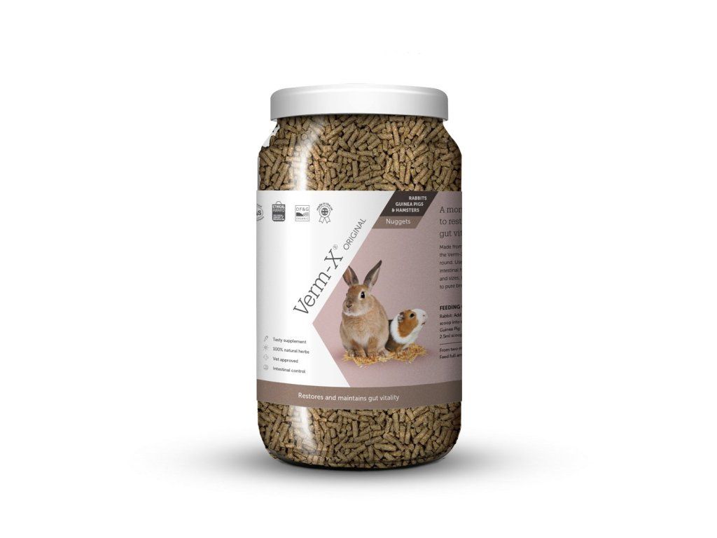 Verm-X® pro hlodavce je zdravý pamlsek, který obsahuje vysoký obsah vlákniny. Neznamená, že hlodavci, kteří jsou chovány volně nebo uvnitř jsou chráněni a imunní vůči střevním potížím. Mohou se nakazit z infikované trávy nebo králíkárny, ze stopy z infikované obuvi nebo od jiných volně žijících zvířat. Verm-X® nugetky pro králíky, morčata, křečky, fretky a všechny hlodavce byly pečlivě formulovány a vyrobeny tak, aby byly nejen velmi chutné, ale hlavně chránily před střevními problémy. Zdravý trávicí systém, který se nachází ve střevním traktu je velmi důležitý a představuje 70% imunitního systému.