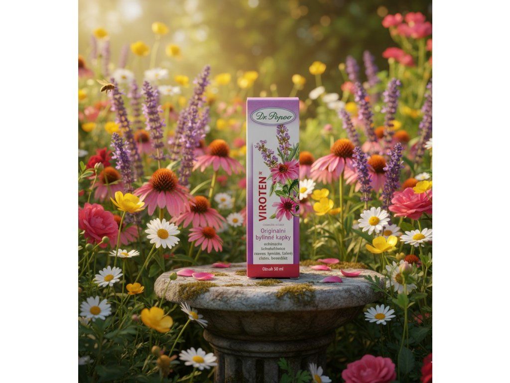 V dnešní době je posilování imunitního systému téměř nutností. O imunitu je třeba pečovat a proto jsme pro vás namíchali originální směs ze 7 vybraných bylin. Bylinné kapky VIROTEN® obsahují třapatku nachovou i třapatku bílou a společně se zázvorem, tymiánem i šalvějí to jsou vynikající bylinky pro přirozenou obranyschopnost (imunitní systém) a podporu zdravého fungování dýchacích cest.