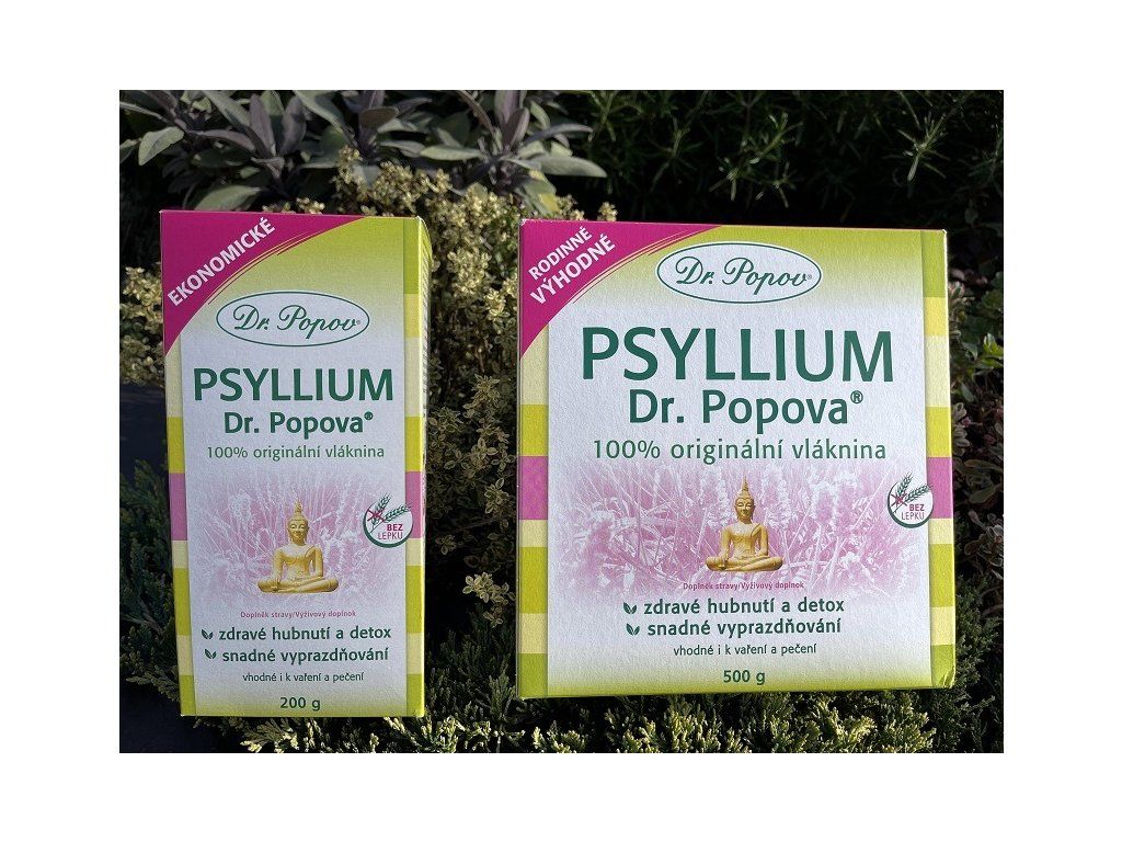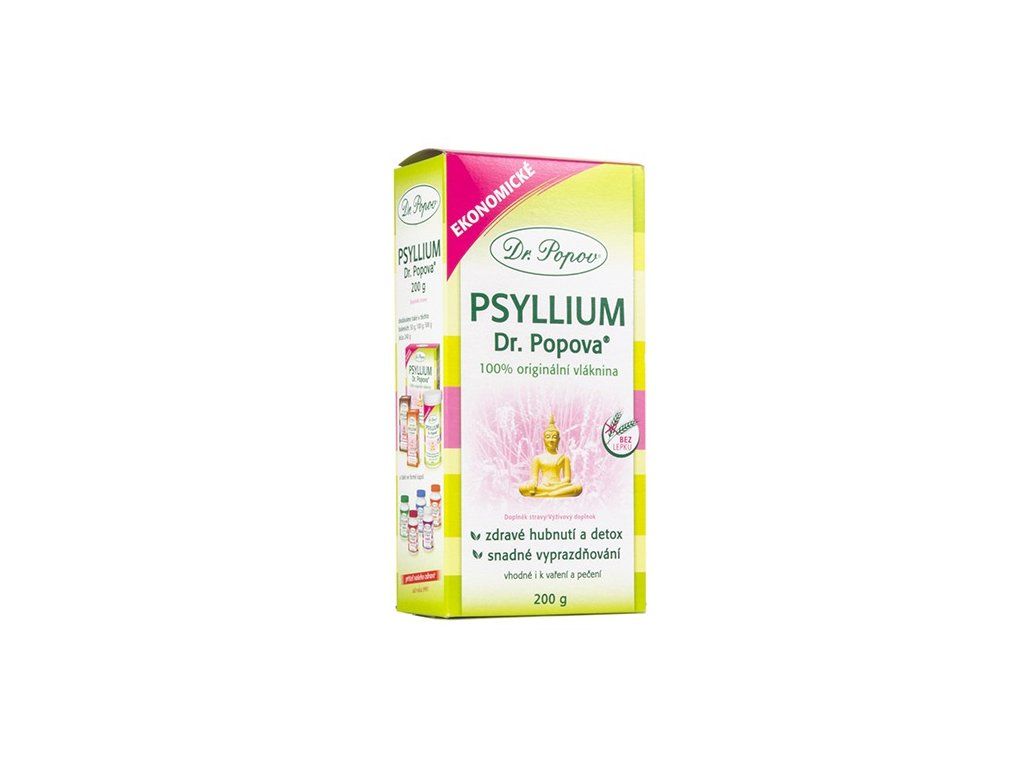 Psyllium Dr. Popova změkčuje stolici a zároveň zvětšuje její objem. Tím napomáhá správnému a snadnému vyprazdňování, což je důležité při tuhé a nepravidelné stolici, diskomfortu v oblasti konečníku, v těhotenství, apod.